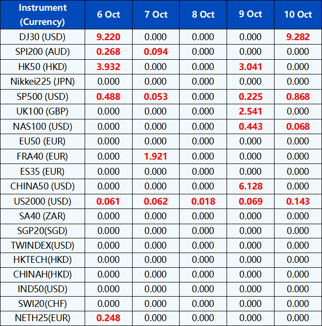 Please note the above data are subject to changes. Please refer to MT4/MT5 for details.