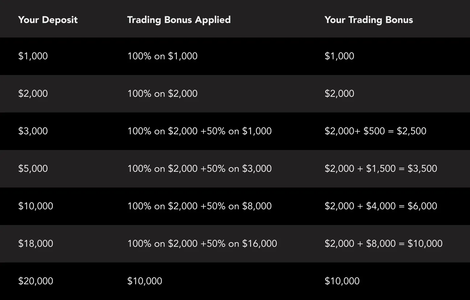 8.Eligible Clients (both new and existing clients), who meet the criteria set forth herein are able to receive trading bonuses, equal to: