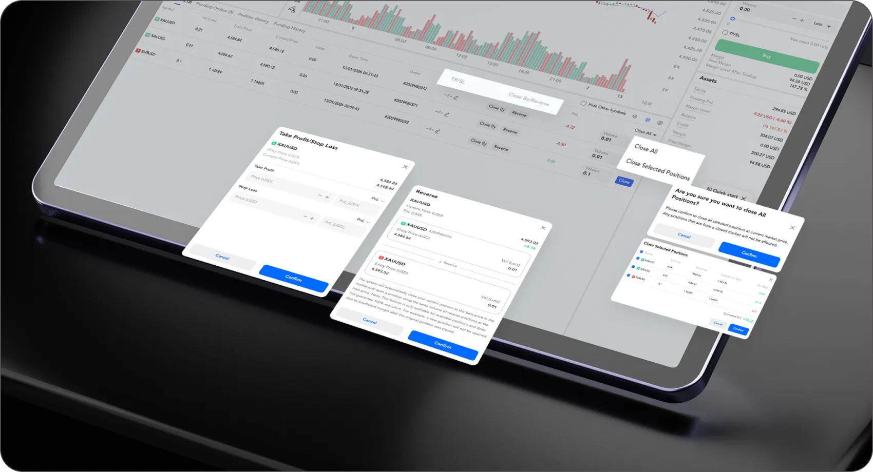 Trade seamlessly on desktop, tablet, and mobile browsers.